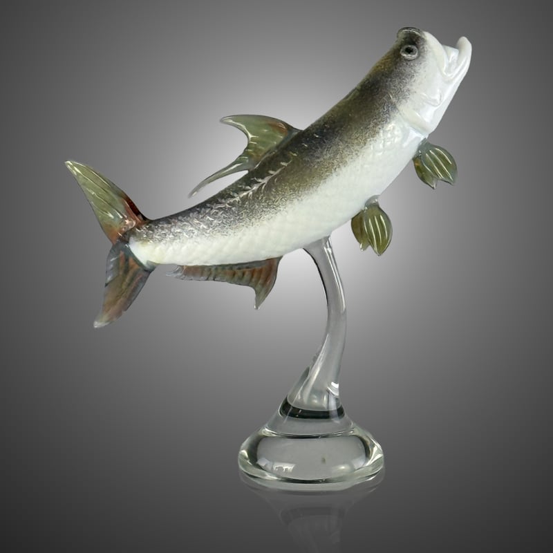Tarpon - Megalops atlanticus - 6" x 5.5" x 2" - The great "Silver King", the most formidable game fish, hand sculpted in borosilicate glass and mounted on a clear glass stand.